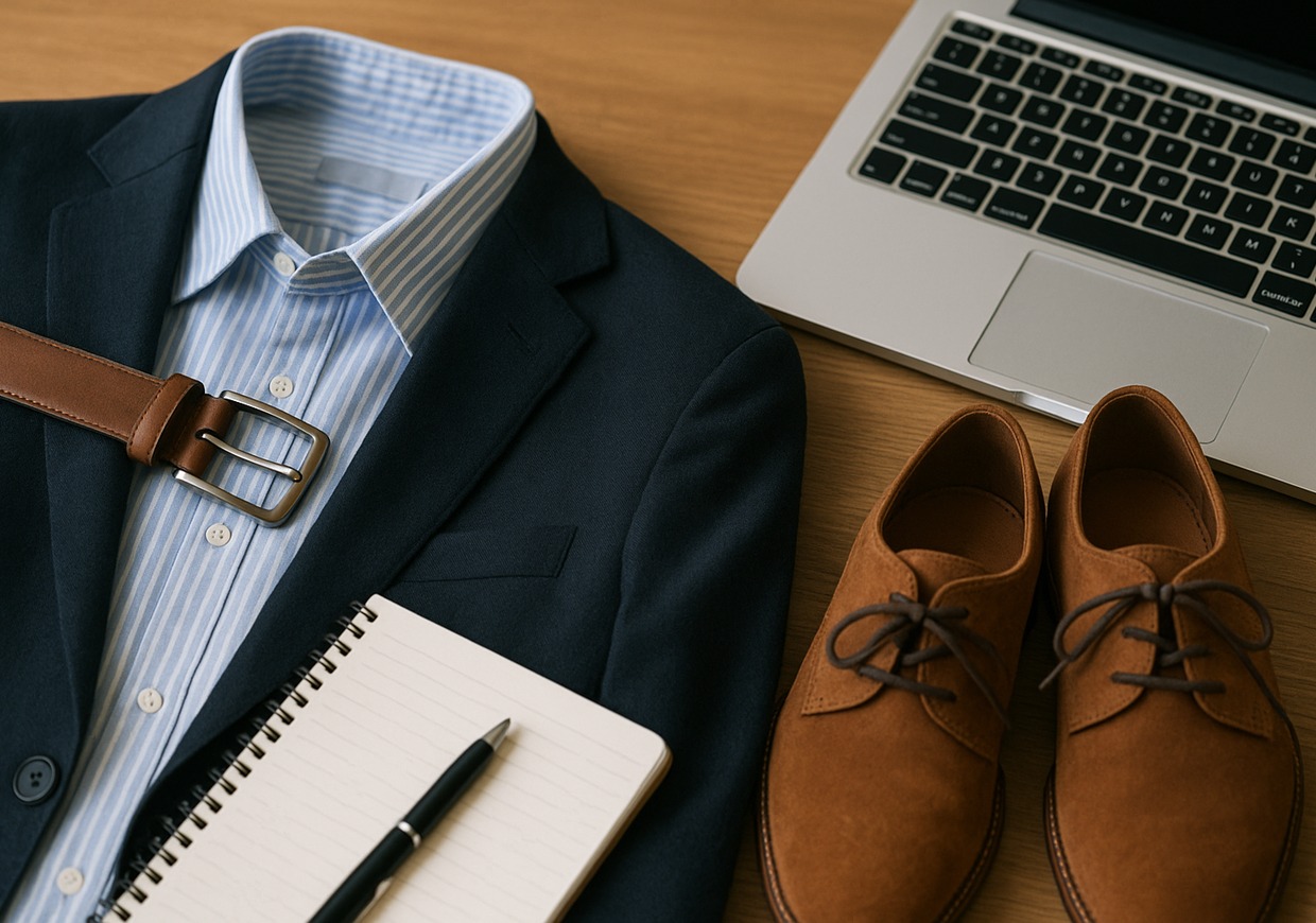 ビジネスカジュアルでも「清潔感」「信頼感」「きちんと感」は重視されます。カジュアルすぎる服装や、極端に個性的なアイテムは避けるのが無難です。足元の革靴も、全体の印象を左右する重要なポイントとなります。