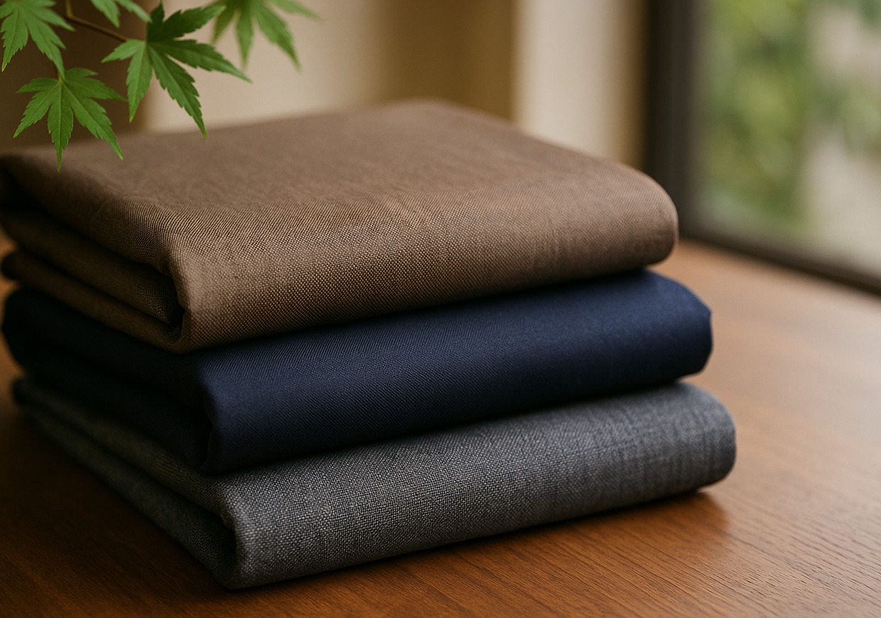 豊橋の春夏は湿度が高くなるため、通気性や吸湿性に優れたウール混やポリエステル素材が好まれます。「トロピカルウール」や「シアサッカー」など、さらりとした肌ざわりの素材が快適です。薄手でシワになりにくいものを選ぶと安心です。